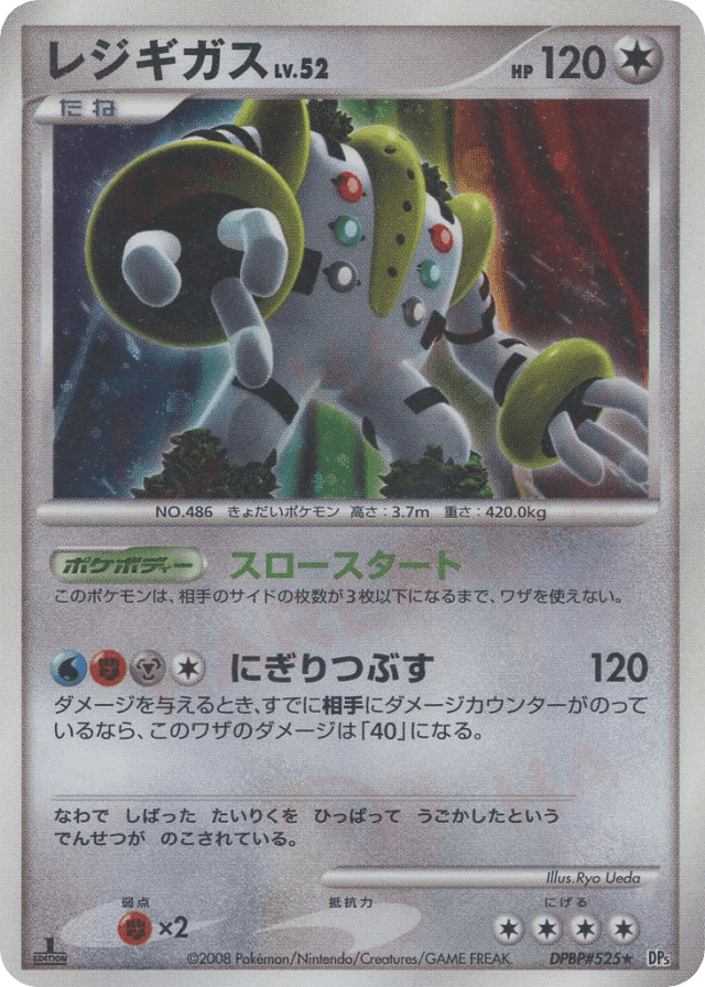 Regigigas can't attack until your opponent has 3 or less Prize cards left.