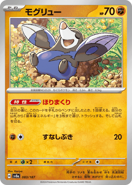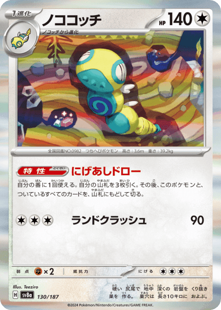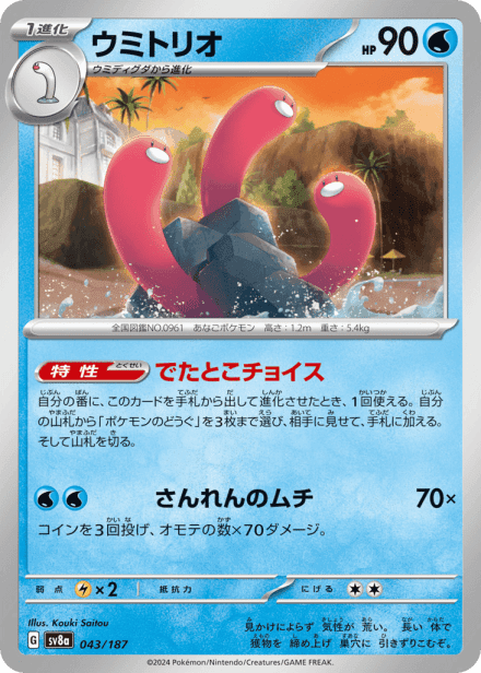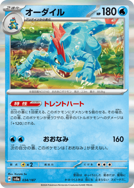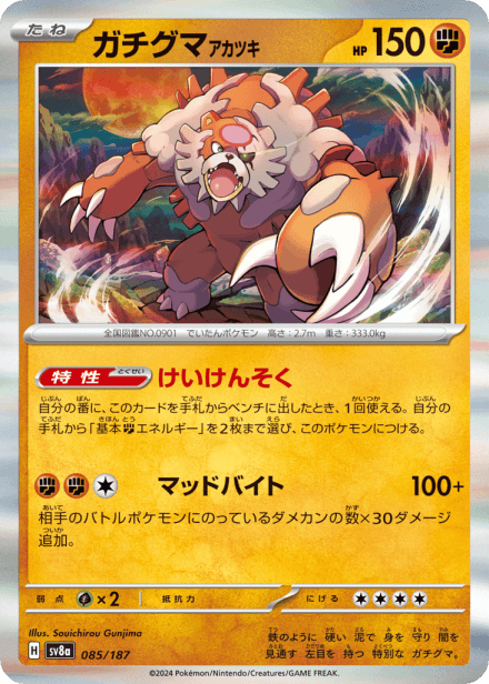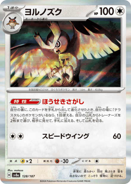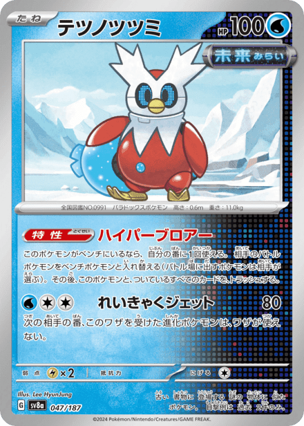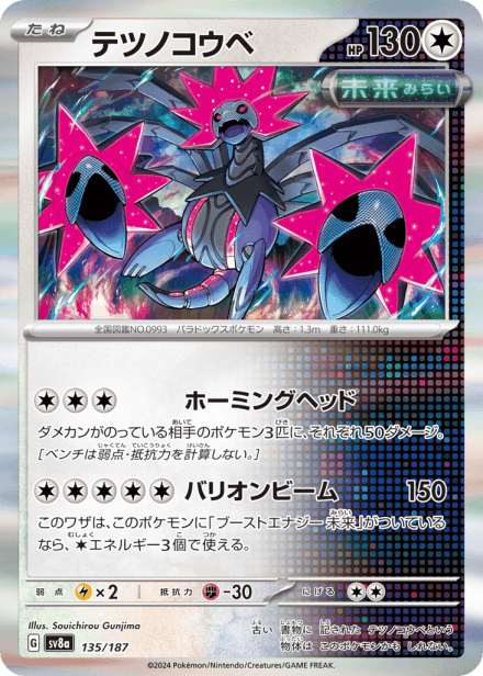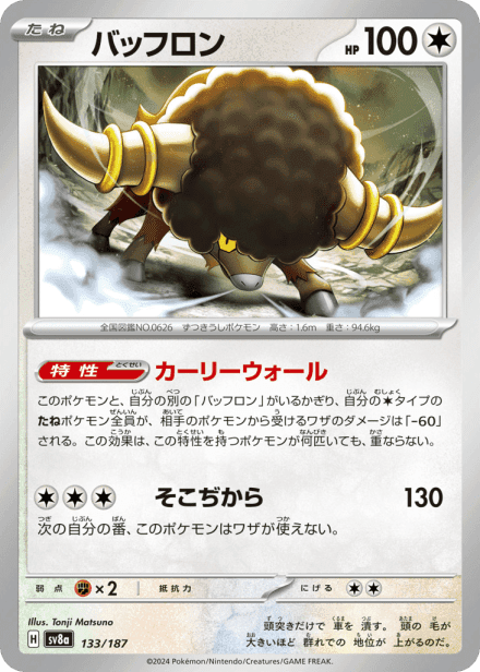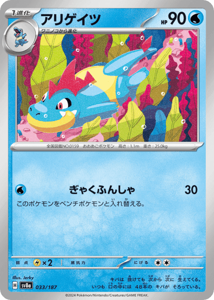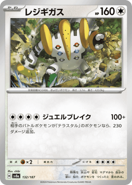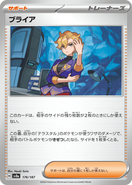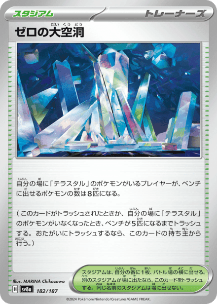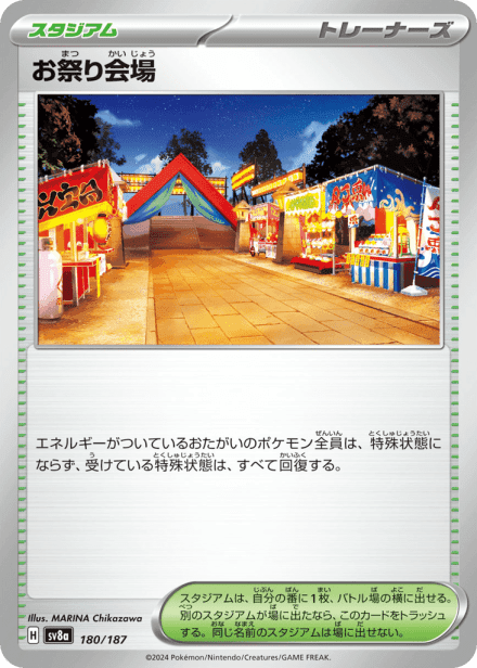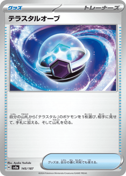 テラスタルフェスex (Terastal Festival ex) is a Japanese expansion for the Pokémon Trading Card Game in the Scarlet & Violet series released on December 6, 2024. The set is listed with a total of 237 cards and a printed total of 187, and it is a Japanese-language, retail release rather than an online-only product. As suggested by the title, the expansion centers on Terastal-themed Pokémon and includes the usual mix of Pokémon cards, Trainer/support cards and Energy, presented across common collector rarities such as holo, full-art and other premium treatments; the “ex” label in the name indicates the set also features the special ex-style cards collectors expect from Scarlet & Violet-era releases.