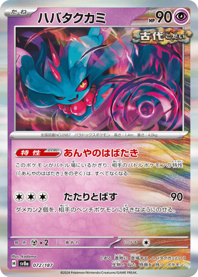 とある 書物に 登場する ハバタクカミという 生物と 似た 特徴を 持つ ポケモン。