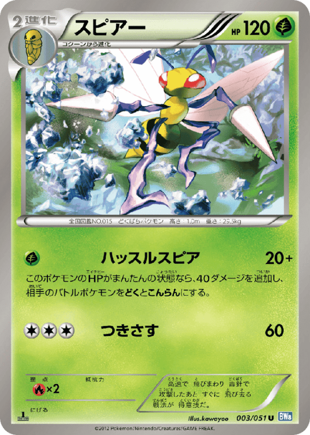 Swift Sting20+Cost: 1このポケモンのHPがまんたんの状態なら、40ダメージを追加し、相手のバトルポケモンをどくとこんらんにする。