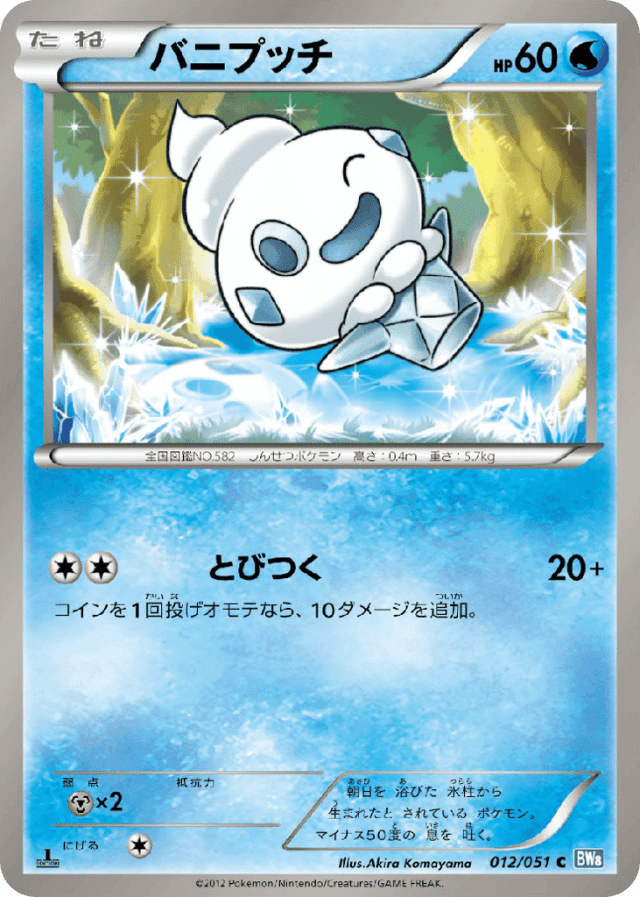 朝日を 浴びた 氷柱から 生まれたと されている ポケモン。 マイナス50度の 息を 吐く。