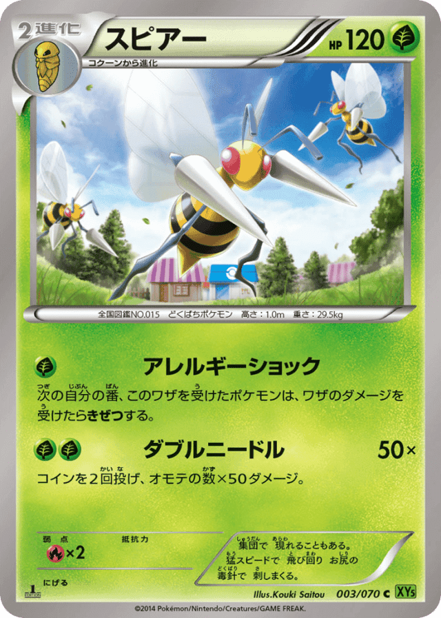 During your next turn, if the Defending Pokémon is damaged by an attack, it is Knocked Out. - ダブルニードル