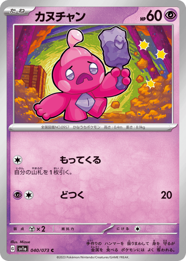手作りの ハンマーを 振りまわして 身を 守るが 金属を 食べる ポケモンには よく 奪われる。