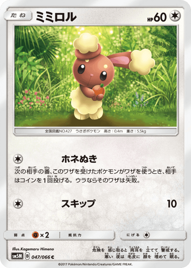 If the Defending Pokémon tries to attack during your opponent's next turn, your opponent flips a coin. If tails, that attack does nothing. - スキップ