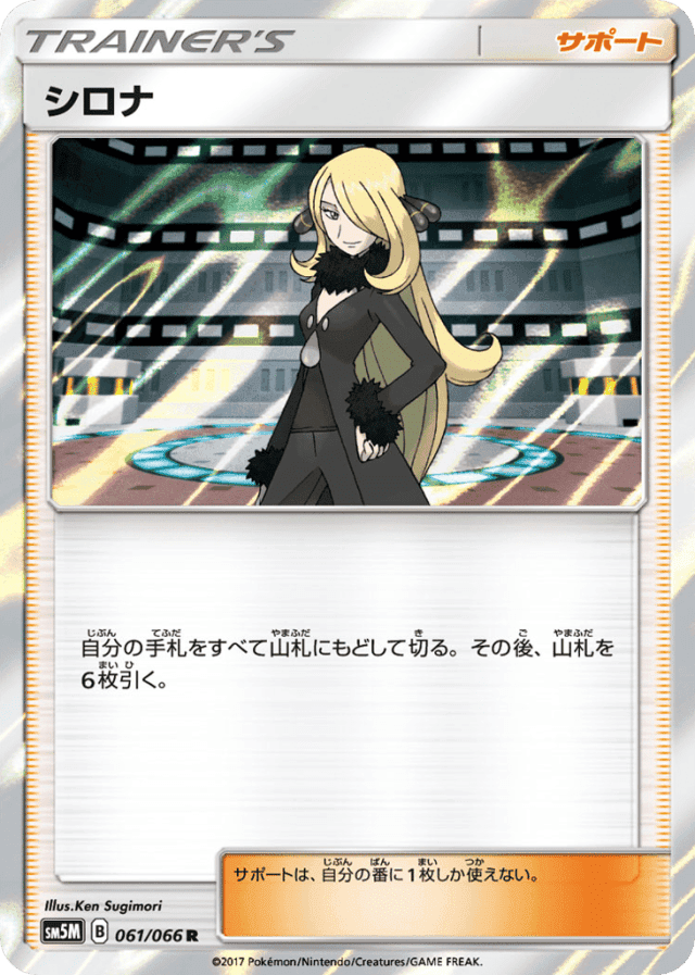 自分の手札をすべて山札にもどして切る。その後、山札を6枚引く。 サポートは、自分の番に1枚しか使えない。