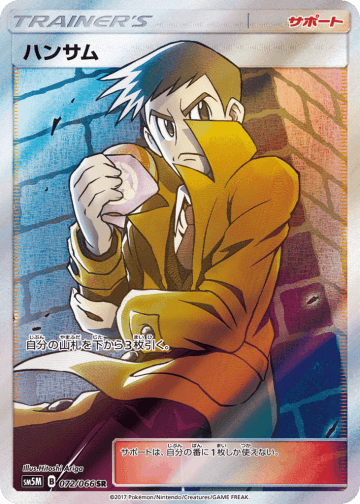 このカードは、自分の手札を2枚トラッシュしなければ使えない。 自分の山札にあるポケモンを1枚、相手に見せてから、手札に加える。そして山札を切る。 グッズは、自分の番に何枚でも使える。