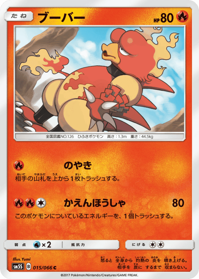 Flamethrower80Cost: 3このポケモンについているエネルギーを、1個トラッシュする。