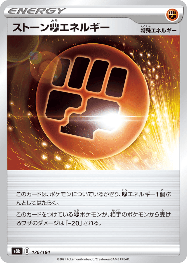 このカードは、ポケモンについているかぎり、Fightingエネルギー1個ぶんとしてはたらく。 このカードをつけているFightingポケモンが、相手のポケモンから受けるワザのダメージは「-20」される。
