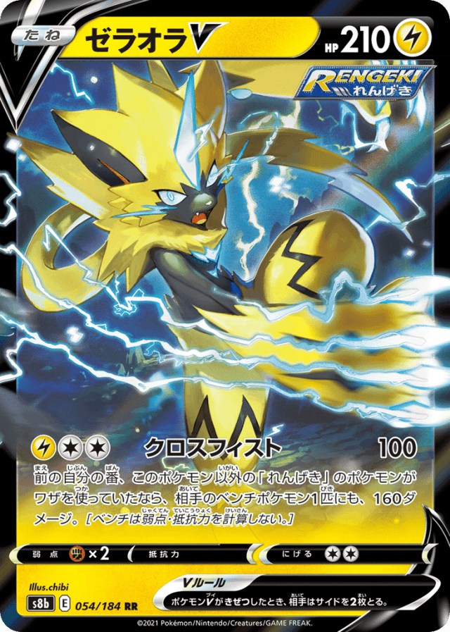 Cross Fist100Cost: 3前の自分の番、このポケモン以外の「れんげき」のポケモンがワザを使っていたなら、相手のベンチポケモン1匹にも、160ダメージ。[ベンチは弱点・抵抗力を計算しない。]