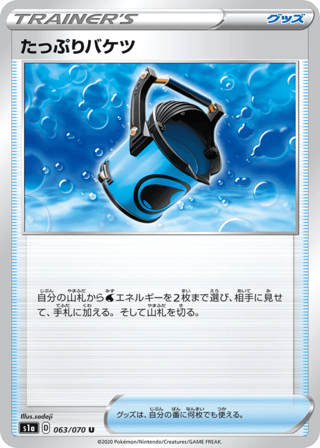 自分の山札からWaterエネルギーを2枚まで選び、相手に見せて、手札に加える。そして山札を切る。 グッズは、自分の番に何枚でも使える。