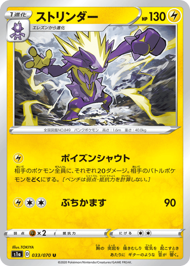 Poison ShoutCost: 1相手のポケモン全員に、それぞれ20ダメージ。相手のバトルポケモンをどくにする。[ベンチは弱点・抵抗力を計算しない。]