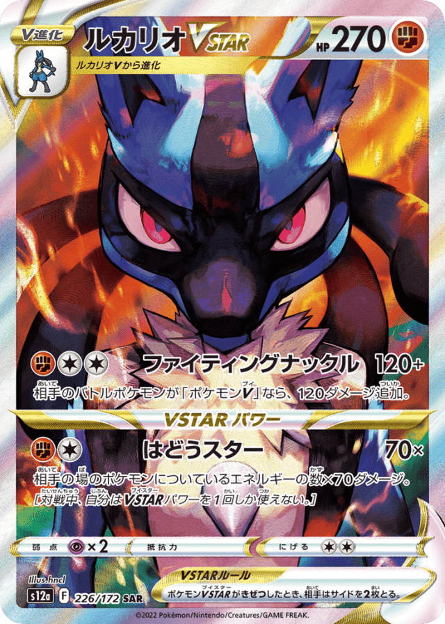 Aura Star70×Cost: 2相手の場のポケモンについているエネルギーの数×70ダメージ。[対戦中、自分はVSTARパワーを1回しか使えない。]
