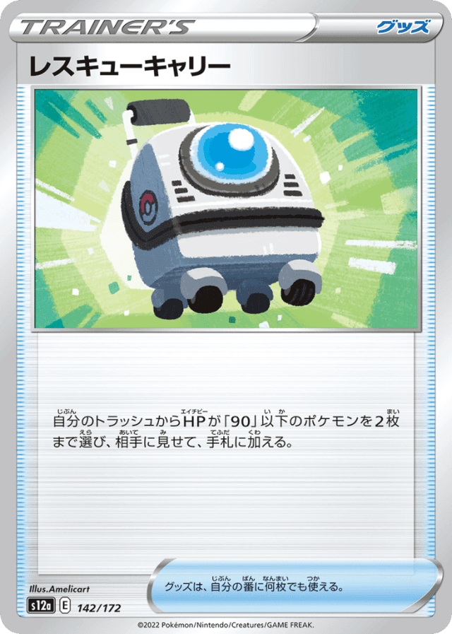 自分のトラッシュからHPが「90」以下のポケモンを2枚まで選び、相手に見せて、手札に加える。 グッズは、自分の番に何枚でも使える。