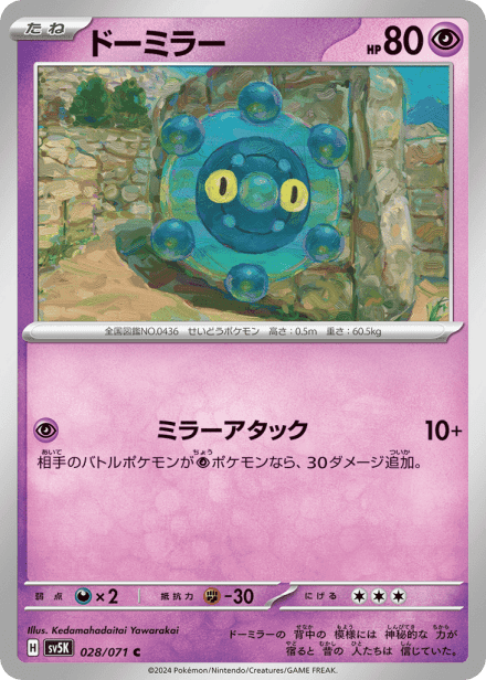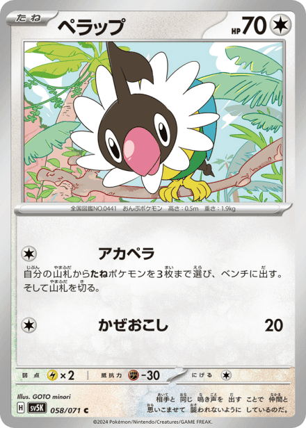 ワイルドフォース (Wild Force) is a Japanese expansion in the Scarlet & Violet series of the Pokémon TCG, released on 2024-01-26 and cataloged under the abbreviation SV5K. The set is listed with 100 cards and a printed total of 71 and is a physical release rather than online-only. It contains the standard mix of Pokémon, Trainer, and Energy cards typical of main-series Scarlet & Violet sets, and collectors will find multiple rarities and foil treatments such as holo, full-art, and secret or alternate-art variants; the title and presentation suggest a focus on wild/nature-themed Pokémon and energetic battle motifs within the series.