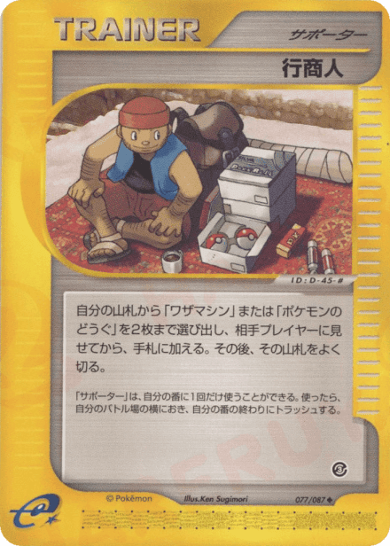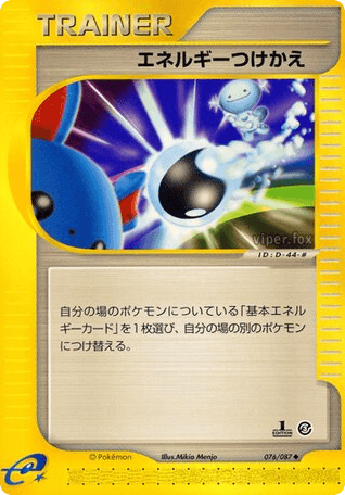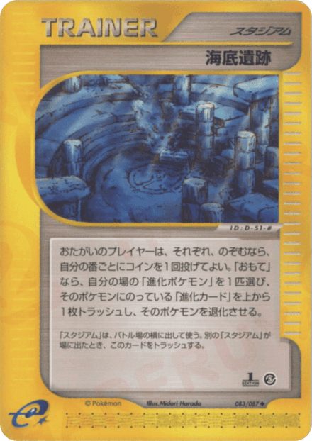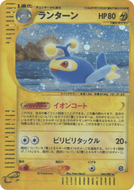 Wind from the Sea (海からの風) is a Japanese expansion in the Pokémon TCG E-Card series released on May 24, 2002. It is listed with a total count of 90 cards (87 officially printed) and is part of the early E-Card releases for the Japanese game. Collectors will find the standard assortment of Pokémon and Trainer cards alongside rarer holographic cards and thematic artwork, with the set focused on sea- and wind-related Pokémon and motifs typical of a themed expansion.