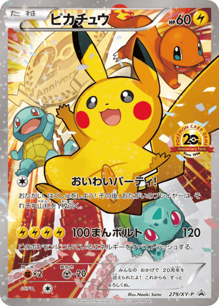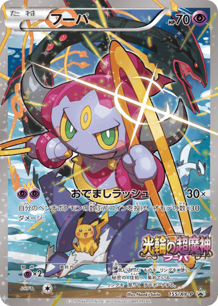 XY Promos is a Japanese-language promotional compilation tied to the Pokémon Trading Card Game's XY series, released around August 2013 and catalogued with 299 cards. The collection gathers promotional cards issued across the XY era—distributed through special products, movie and event giveaways, and retailer or tournament promotions—rather than being a standard booster expansion. Collectors typically find a mix of Pokémon and Trainer promotional cards featuring alternate artwork and varied foil or full-art treatments, together with event- or stamp-marked items and other non-set releases typical of promo compilations.