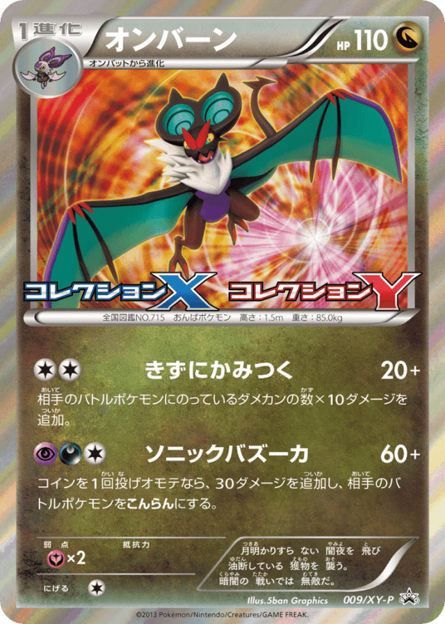 Sonic Bazooka60+Cost: 3コインを1回投げオモテなら、30ダメージを追加し、相手のバトルポケモンをこんらんにする。