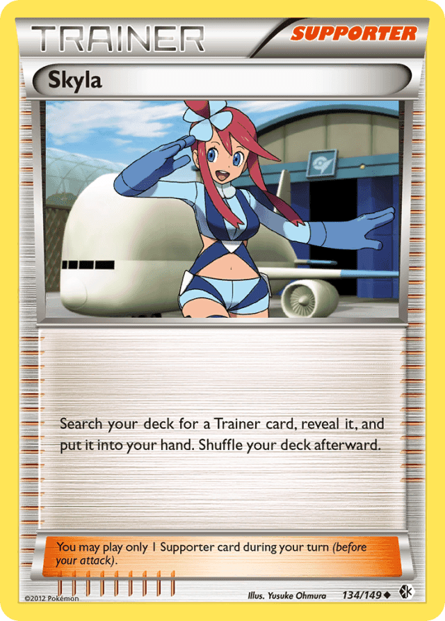 Search your deck for a Trainer card, reveal it, and put it into your hand. Shuffle your deck afterward. You may play only 1 Supporter card during your turn (before your attack).
