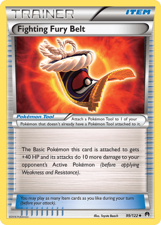 Attach a Pokémon Tool to 1 of your Pokémon that doesn't already have a Pokémon Tool attached to it. The Basic Pokémon this card is attached to gets +40 HP and its attacks do 10 more damage to your opponent's Active Pokémon (before applying Weakness and Resistance). You may play as many Item cards as you like during your turn (before your attack).