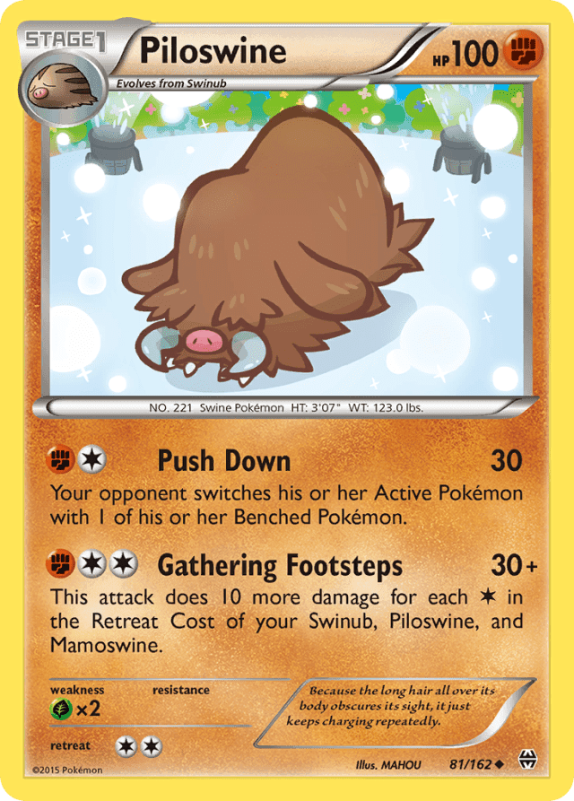 This attack does 10 more damage for each Colorless in the Retreat Cost of your Swinub, Piloswine, and Mamoswine.