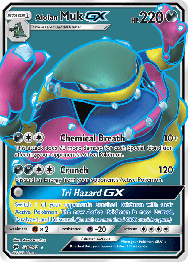 Switch 1 of your opponent's Benched Pokémon with their Active Pokémon. The new Active Pokémon is now Burned, Paralyzed, and Poisoned. (You can't use more than 1 GX attack in a game.)