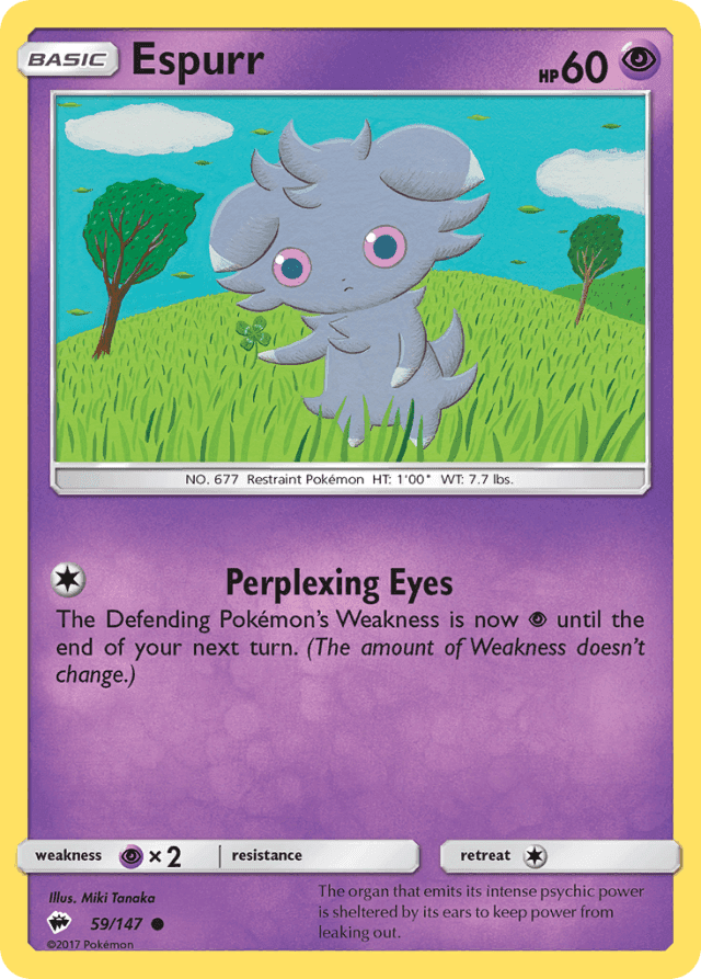 The Defending Pokémon's Weakness is now Psychic until the end of your next turn. (The amount of Weakness doesn't change.)