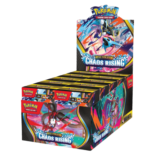 Pokemon Chaos Rising Build & Battle Display Case is a sealed, retail-ready collection of Build & Battle kits from the MA5 Chaos Rising expansion. Ideal for collectors, retailers, and players, this display case bundles multiple sealed Build & Battle products so you can stock events, expand your playgroup, or open several ready-to-play kits at once. Each kit in the case is crafted to deliver fast, accessible play straight from the box while showcasing themes and cards from the Chaos Rising set. The sealed display is a great shelf centerpiece for hobby shops or a convenient option for fans seeking multiple unopened Build & Battle experiences and authentic sealed product.