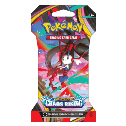 This is a Pokémon Trading Card Game Chaos Rising Sleeved Booster Pack (set MA5) featuring Floette on the pack art. It is a sealed booster pack product containing a randomized selection of cards drawn from the Chaos Rising expansion. The sleeved pack preserves artwork and presentation and is intended for pack opening, deck building, casual play, or adding a sealed item to a collection. Buyers and collectors can expect the typical range of card rarities associated with a set release and the sealed condition advantages important for preserving pack art and cards.