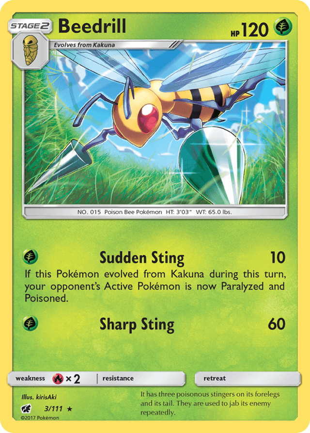 If this Pokémon evolved from Kakuna during this turn, your opponent's Active Pokémon is now Paralyzed and Poisoned.