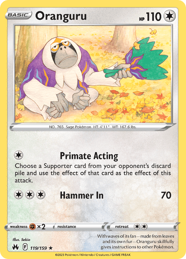 With waves of its fan—made from leaves and its own fur—Oranguru skillfully gives instructions to other Pokémon.
