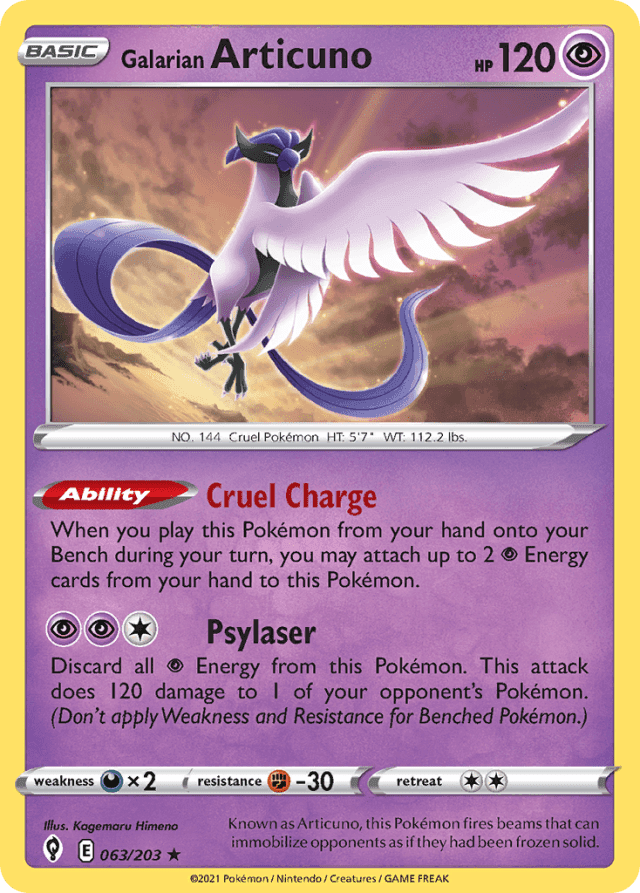 Known as Articuno, this Pokémon fires beams that can immobilize opponents as if they had been frozen solid.