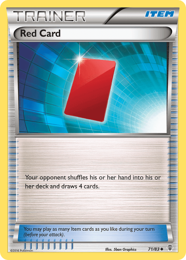 Your opponent shuffles his or her hand into his or her deck and draws 4 cards. You may play as many Item cards as you like during your turn (before your attack).