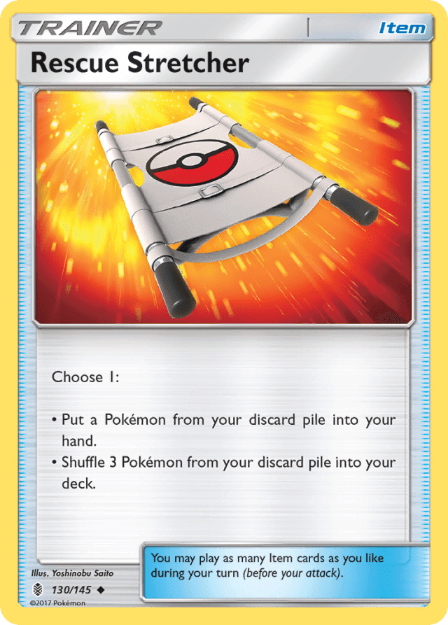 Choose 1: • Put a Pokémon from your discard pile into your hand. • Shuffle 3 Pokémon from your discard pile into your deck. You may play as many Item cards as you like during your turn (before your attack).