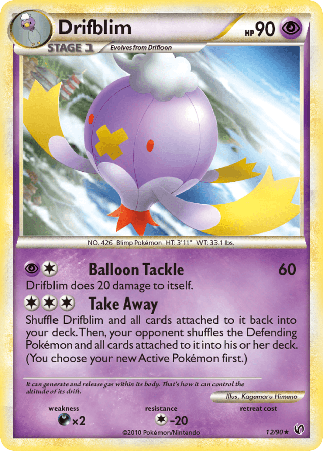 Shuffle Drifblim and all cards attached to it back into your deck. Then, your opponent shuffles the Defending Pokémon and all cards attached to it into his or her deck. (You choose your new Active Pokémon first.)