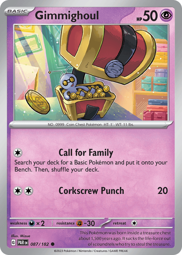 This Pokémon was born inside a treasure chest about 1,500 years ago. It sucks the life-force out of scoundrels who try to steal the treasure.