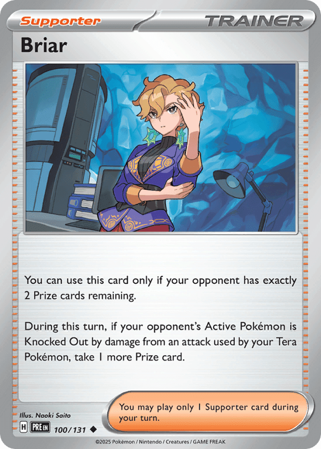 You can use this card only if your opponent has exactly 2 Prize cards remaining. During this turn, if your opponent's Active Pokémon is Knocked Out by damage from an attack used by your Tera Pokémon, take 1 more Prize card. You may play only 1 Supporter card during your turn.