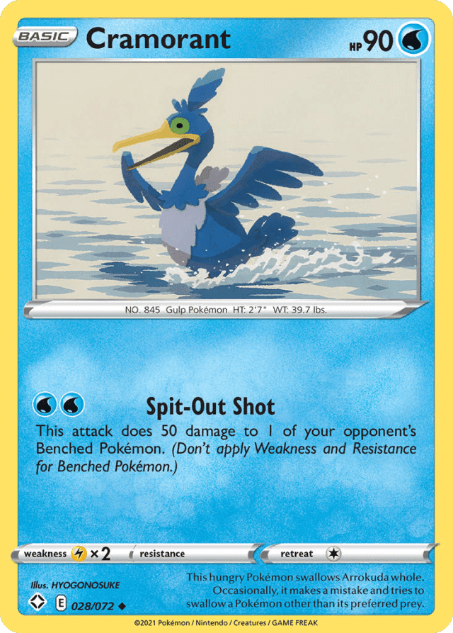 This hungry Pokémon swallows Arrokuda whole. Occasionally, it makes a mistake and tries to swallow a Pokémon other than its preferred prey.