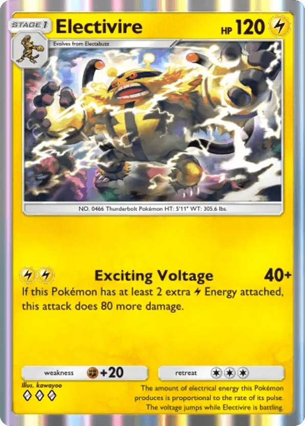 If this Pokémon has at least 2 extra Lightning Energy attached, this attack does 80 more damage.