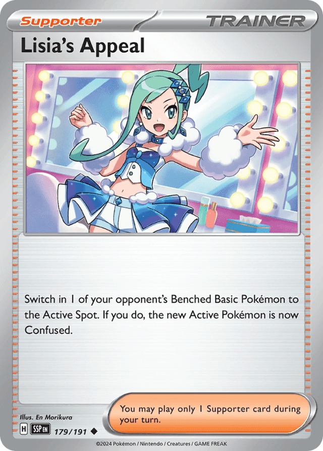 Switch in 1 of your opponent's Benched Basic Pokémon to the Active Spot. If you do, the new Active Pokémon is now Confused. You may play only 1 Supporter card during your turn.