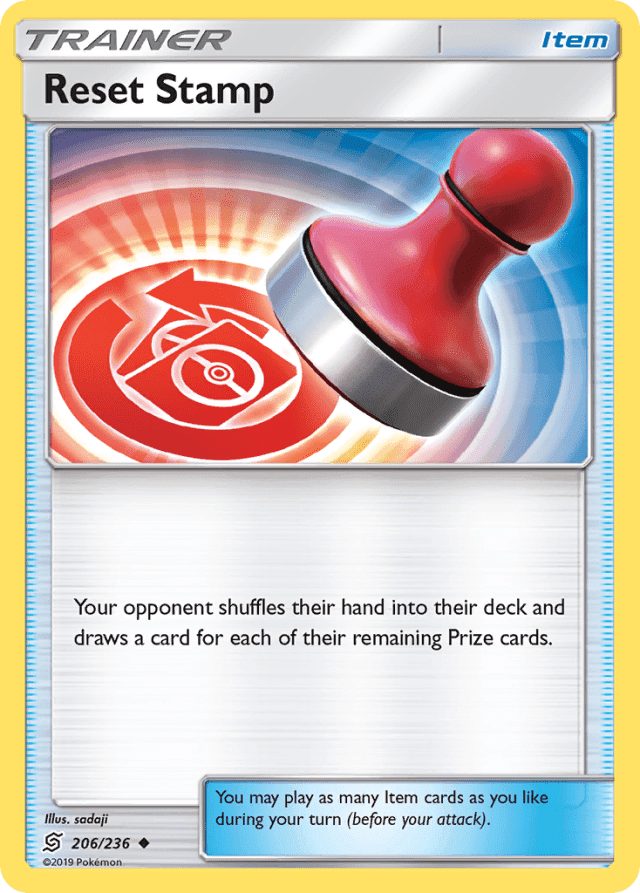 Your opponent shuffles their hand into their deck and draws a card for each of their remaining Prize cards. You may play as many Item cards as you like during your turn (before your attack).