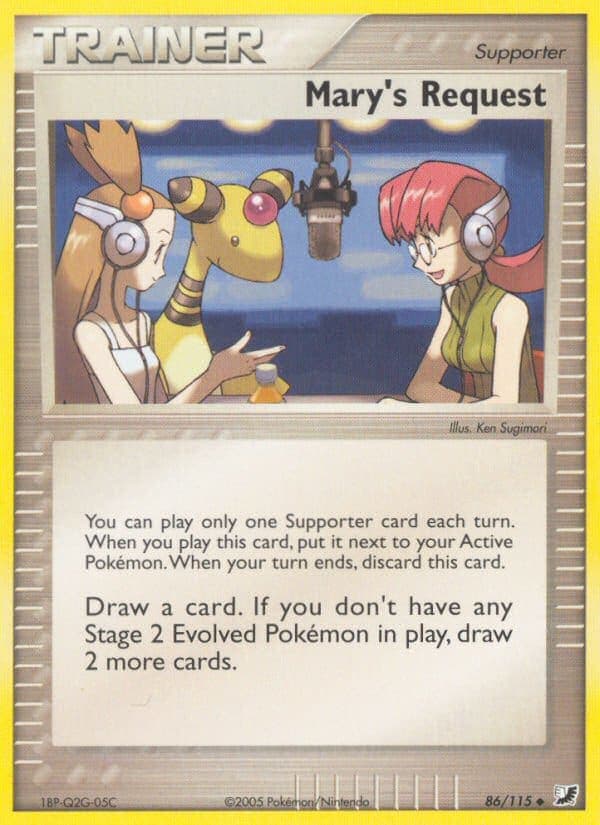 You can play only one Supporter card each turn. When you play this card, put it next to your Active Pokémon. When your turn ends, discard this card. Draw a card. If you don't have any Stage 2 Evolved Pokémon in play, draw 2 more cards.