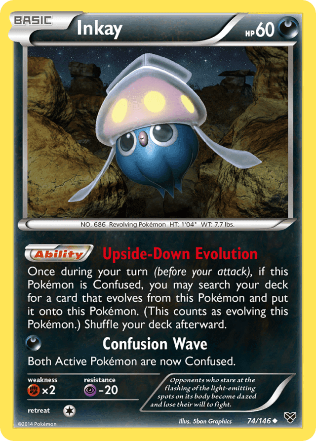 Once during your turn, (before your attack), if this Pokémon is Confused, you may search your deck for a card that evolves from this Pokémon and put it onto this Pokémon. (This counts as evolving this Pokémon.) Shuffle your deck afterward.