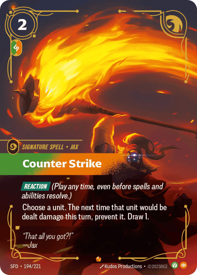 [Reaction] (Play any time, even before spells and abilities resolve.) Choose a unit. The next time that unit would be dealt damage this turn, prevent it. Draw 1.