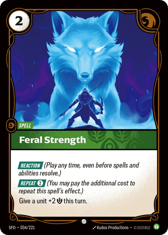 [Reaction] (Play any time, even before spells and abilities resolve.) [Repeat] {2} (You may pay the additional cost to repeat this spell's effect.) Give a unit +2 {M} this turn.