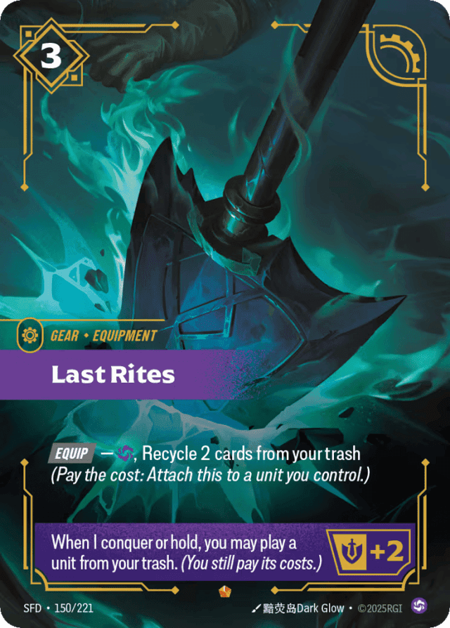[Equip] — {CHR}, Recycle 2 cards from your trash (Pay the cost:** **Attach this to a unit you control.)