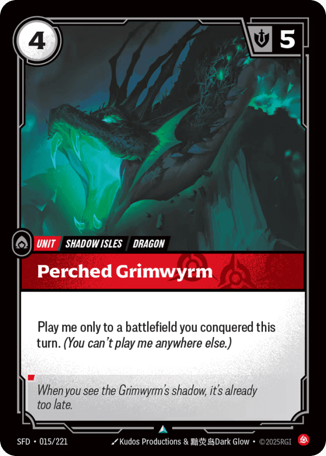 Play me only to a battlefield you conquered this turn. (You can't play me anywhere else.)